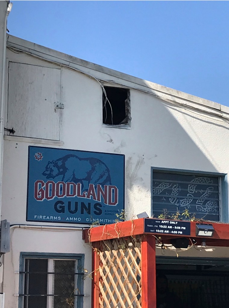 Santa Barbara Sheriff’s detectives are investigating a burglary reported on Thursday at Goodland Guns on Hollister Avenue, where the suspect — or suspects — are thought to have entered through a hole on the side of the building.