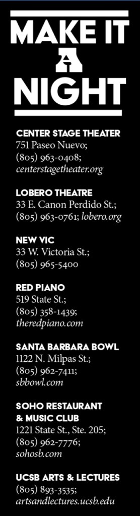 Ultimately, the impact of this unplanned and unprecedented break with decades of continuous operation will take time to comprehend. Venues may have trouble finding and training employees, and audiences are sure to encounter unexpected glitches as a rusty system gets back into gear. Patience will be a key factor in maintaining the kind of atmosphere that we all crave on a night out. Yet there are some bright spots that show no sign of dimming. Ticket sales have been robust across the board, and the quality of the acts that Santa Barbara venues have booked rival those of a city three times our size. The performing arts hiatus has also offered operators a rare opportunity to reflect on their intentions. At Center Stage, where many performers and directors get their start, the emphasis coming back will be on promoting greater diversity in programming. “The hard times are when you learn,” says Teri Ball, “we will be stronger and better for them.”