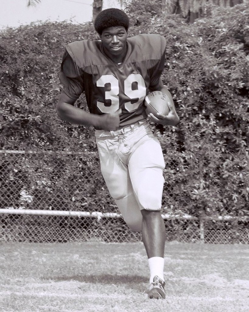 Scary in the tumult of a football game — he would pummel people with devastating blocks and explosive runs. Beautiful off the field — he was friendly and approachable, as nice a man as you’d want to meet. It was as if his parents, Mabel and Sam Sr., migrants from Tennessee and Texas, channeled Santa Barbara’s gentle sunshine into their formidable son.