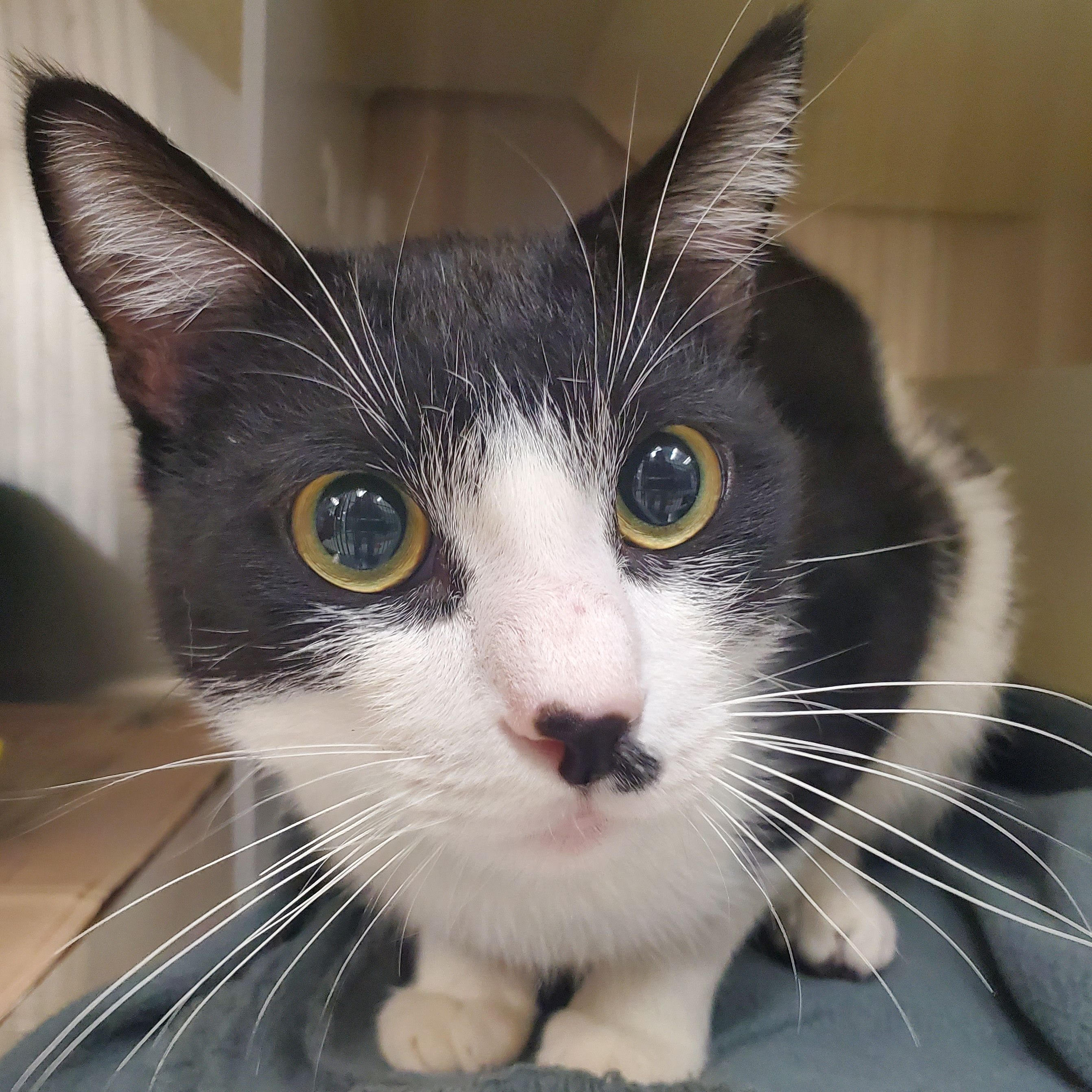 Broderick is a one-year-old black and white male cat. He is energetic and is looking for a human experienced with cat language. Broderick is playful and affectionate, but doesn’t like other cats. He enjoys spending time in our enclosed outdoor play areas getting fresh air and sunshine.