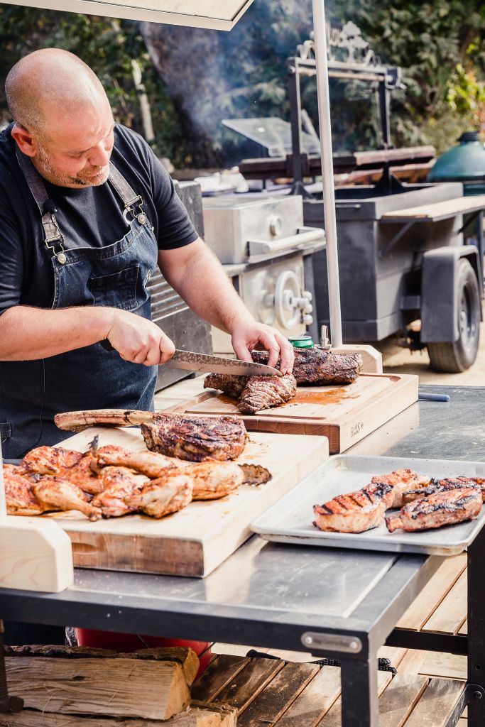 Think of the Cookouts as the Alisal’s excuse to throw a crazy culinary party, where, somehow, people might line dance to the Rolling Stones — and “Beast of Burden” at that. The venerable property partners its own talented chef Anthony Endy with guest visiting chefs who want to flaunt their barbecue chops, which sometimes include actual chops. The September 26 edition starred Iron Chef Cat Cora, so the menu had a definite Mediterranean/Greek slant, from souvlaki pork kabobs to rotisserie Wagyu beef shawarma — think a killer beef cut meets a gyro, and both win. And, in perhaps my favorite food name ever, a “flaming cheese station,” featuring scarfable oak-grilled halloumi redolent of lemon and oregano.