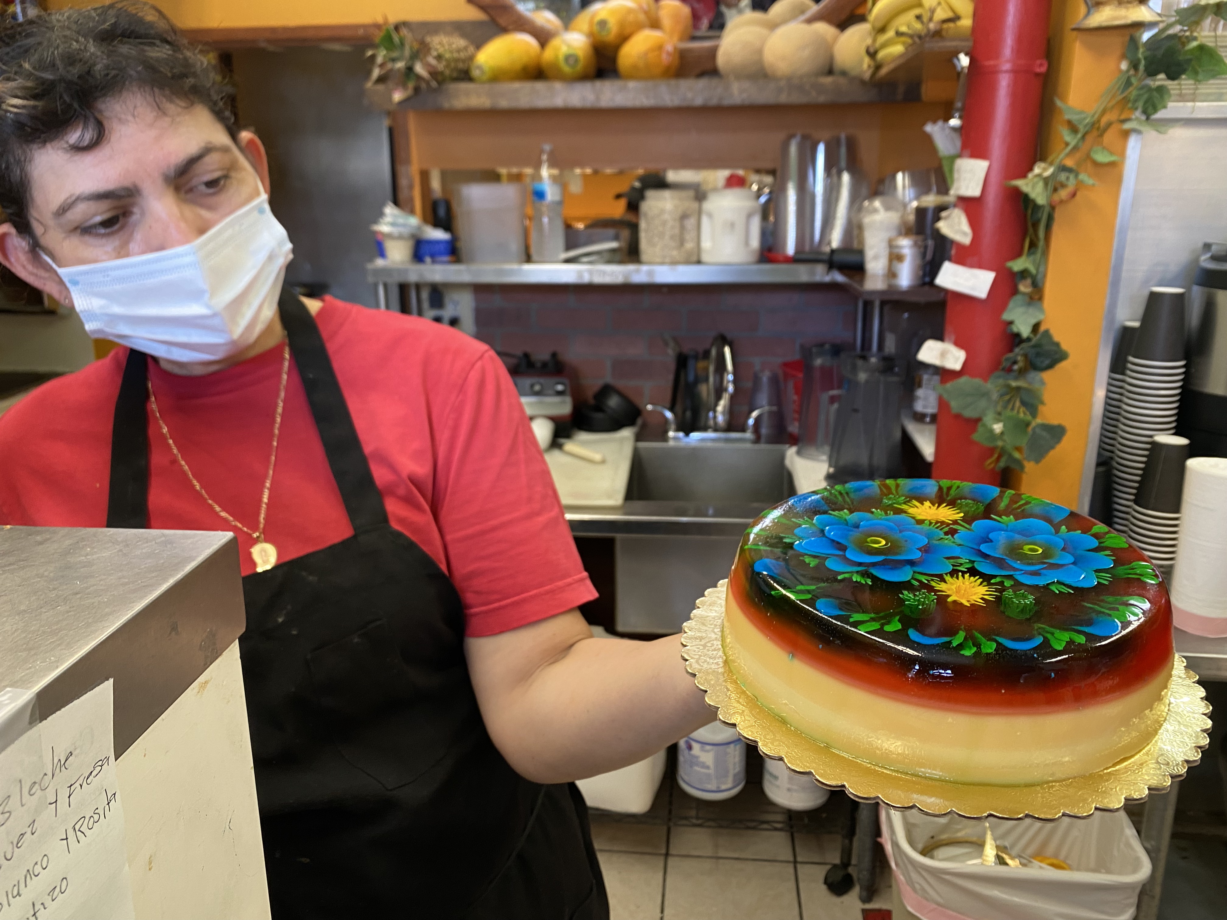 The other tortas range from more traditional Mexican flavors, such as carnitas, chicken mole, and chorizo; to ones influenced by Italian, Hawaiian, and typical American breakfast and lunch dishes; to a range of vegetarian options that rely on zucchini, bell peppers, and mushrooms as the base. Los Tarascos also serves burritos, salads, full plates, and a full menu of fresh juices, smoothies, and licuados. But those pan dulce and dessert racks attract the most immediate customer attention, so stacked as they are with colorful creations by Rojas and his team of bakers.