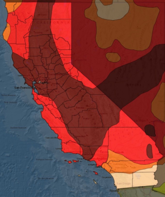 Fully 87 percent of the state is in either exceptional or extreme drought conditions, having averaged barely a foot of rain last year, the driest year on record since 1924. The largest reservoir in California, Shasta up near Redding, is at critically low levels, and its second largest, Oroville on the Feather River, has gone from a crisis-level spill in 2017 to a record low this year.
