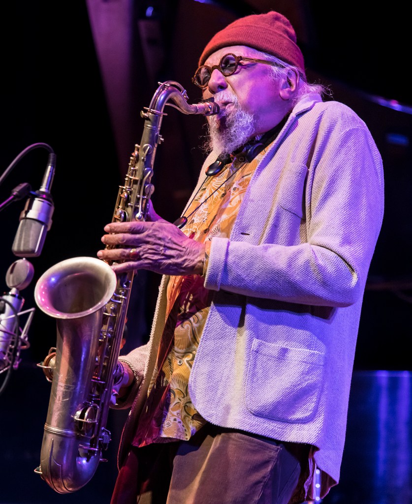 The opening of this exquisite set of music found Lloyd reflecting on three friends who have recently passed to another plane of existence. The first number, “The Dirge,” was dedicated to the great jazz promoter George Wein, and set the tone for an evening of relaxed, bluesy ballads interspersed with moments of upper-register intensity. Reminiscing about friends Phil Schaap and Mikis Theodorakis led to a cosmic version of the Theodorakis composition “I’ve Kept a Hold of My Life.”