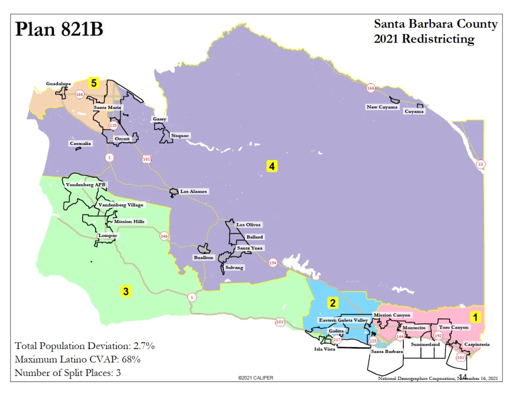 The county’s Citizens Independent Redistricting Commission brings a year’s worth of effort to a conclusion on December 8, after first choosing five maps, or plans, out of roughly 80 that were submitted by November 12. The brief span is why Goleta decided to send a letter ahead of the commission’s next meeting on December 1, advocating for Plan 818 as its first choice, and Plan 821B as the second, judging them the least harmful to the city and its citizens.