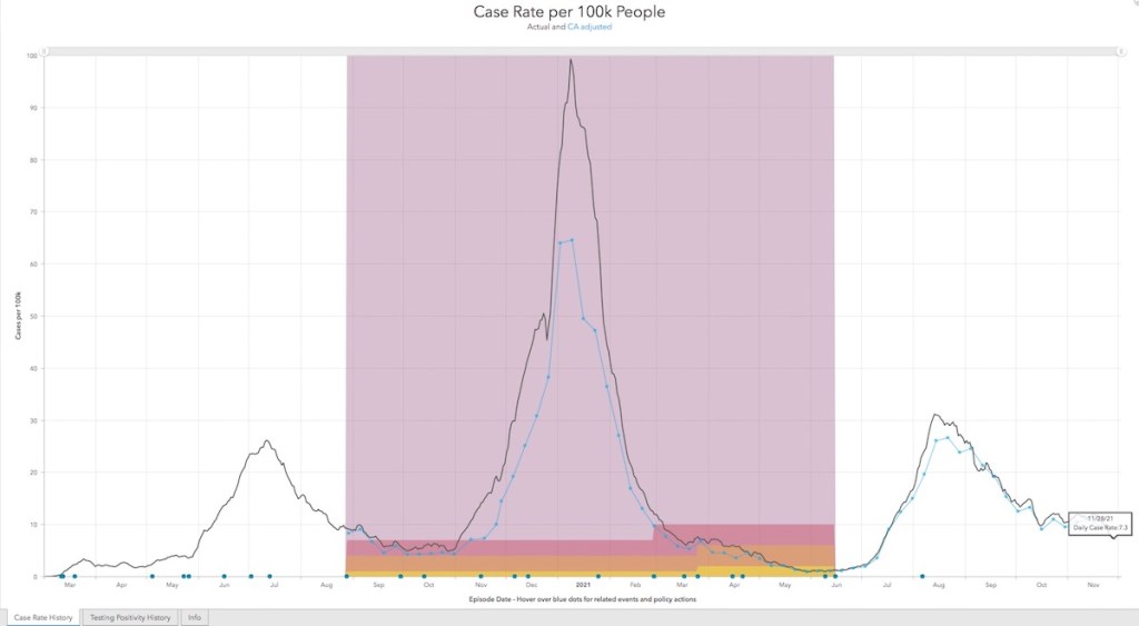 While Santa Barbara awaits its first real Omicron case, County Public Health has extended its indoor mask order for another 30 days, through January 2. To be able to lift the order, the county would need to be at 7 cases per 100,000 people or lower for three consecutive weeks. It first reached that level on November 26. A second consideration is low and stable hospitalizations for at least three days.