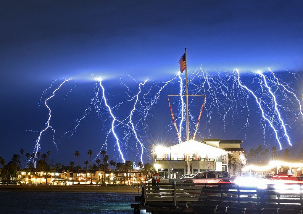 Eliason jokes about being out on the wharf with a metal tripod standing in a puddle of water during a storm that let loose no less than 1,000 strikes throughout Southern California. “The only thing I was missing was a nine iron,” he laughed. The real story is that Eliason has two apps that allow him to track weather. One specifically tracks lightning. He knew exactly where the lightning was coming from and where it was going. And to maximize the effect, he set his camera for a 60-second exposure. Translated, that means his photograph captured every bolt of lightning to explode within his frame in a 60-second span of time.