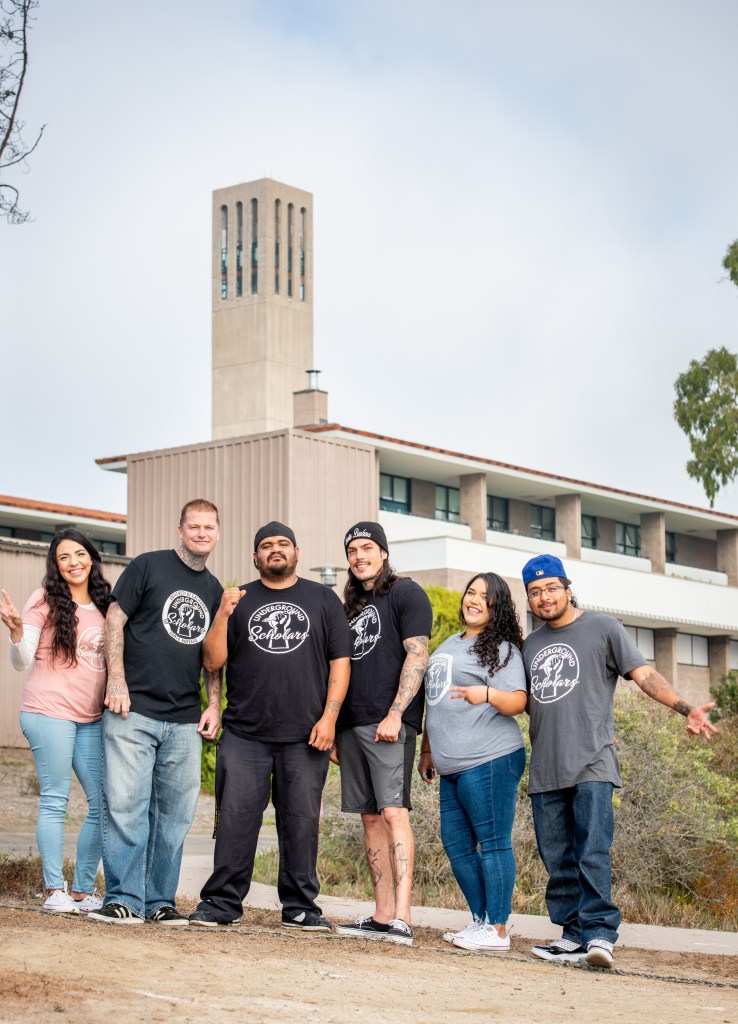 BUILDING A PRISON-TO-SCHOOL PIPELINE: The Underground Scholars program at UCSB provides wraparound resources to students who have been affected by the criminal justice system. From left to right, Lisandra Barrera-Rising, Ryan “Flaco” Rising, Juan Bran-Gudiel, Luis Muñoz, Melissa Ortiz and Gilberto Murillo. | Credit: Erick Madrid