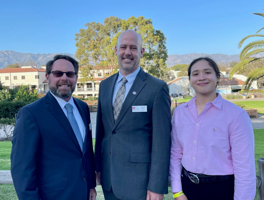 SBCC Foundation Board President Scott Vincent, Foundation CEO Geoff Green, and Promise Program participant and event speaker Sarhai Gastelum at President’s Circle Reception | Credit: Gail Arnold