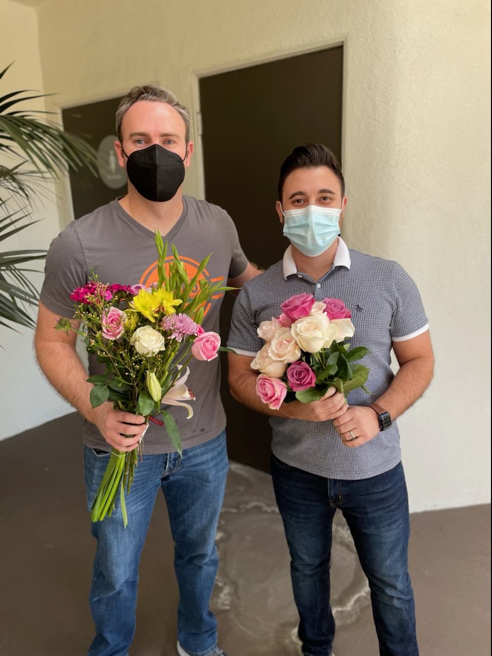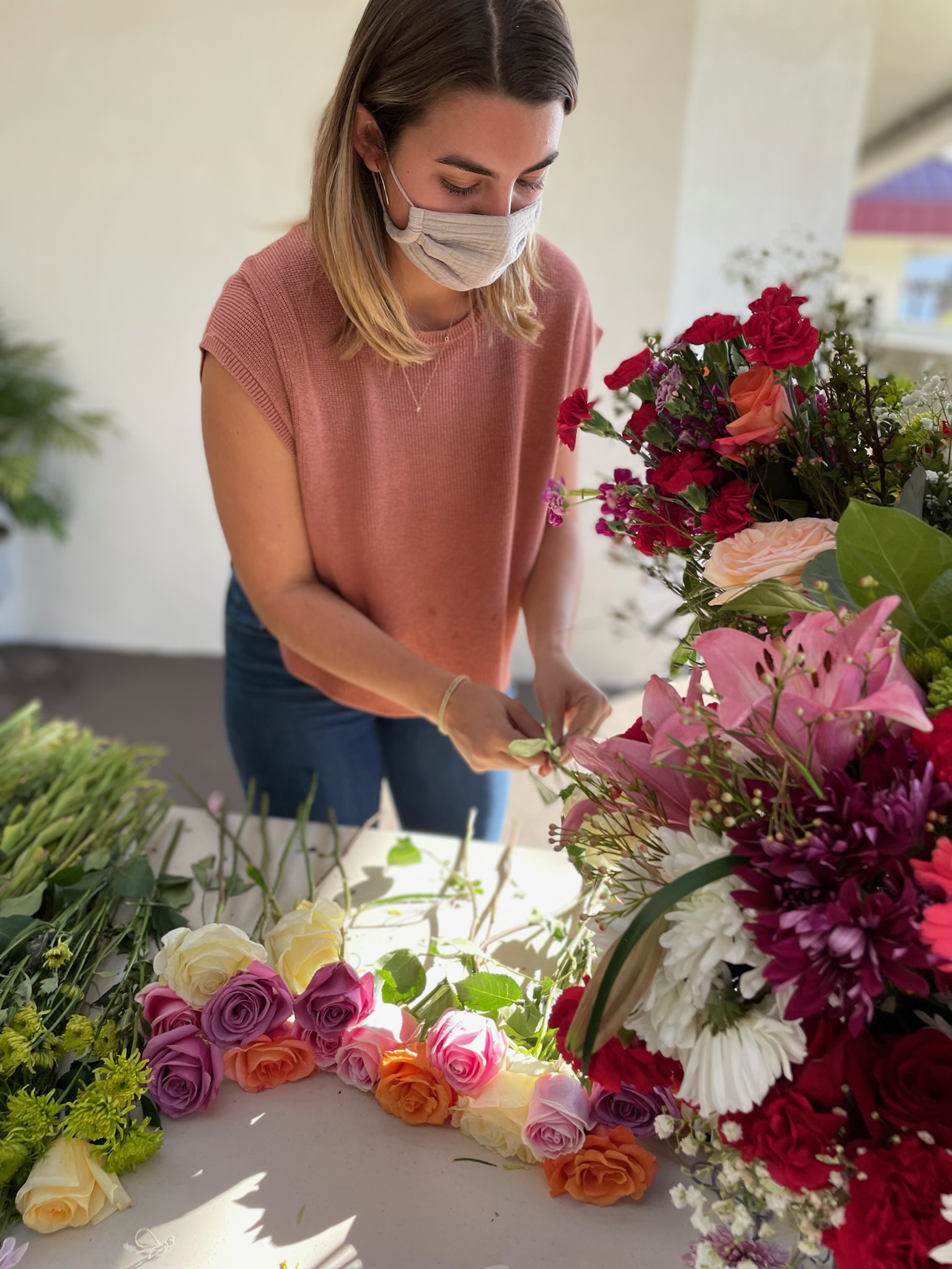 On January 24, Young Professional Network volunteers Stephen MacFarlane, Mia Wamsley, Marisa Holly, Alyssa Jones, and Jorden Angel gathered at the Teddy Bear Cancer Foundation office and set up a bouquet creation station in the courtyard, using flowers that were donated by Trader Joes.