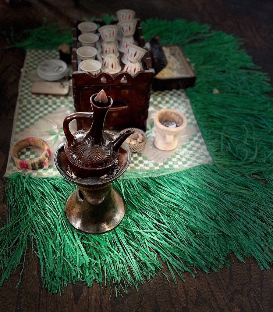 The tradition probably goes back millennia — coffee is originally from Ethiopia, after all — and involves a full preparation and ingestion process, from washing and roasting the green beans, to cooking the coffee, to drinking three small cups. Meanwhile, frankincense — also from Ethiopia — is burning, snacks (typically popcorn or popped sorghum) are being enjoyed, and conversation is rampant.