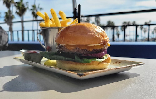 Burgers or brunch? The Brunch Burger at Set Restaurant in the Hilton Santa Barbara Beachfront Resort answers that question with a resounding “yes.” This substantial Angus beef patty on a brioche bun comes topped with a fried egg, swiss cheese, butter lettuce, and bacon-onion jam.