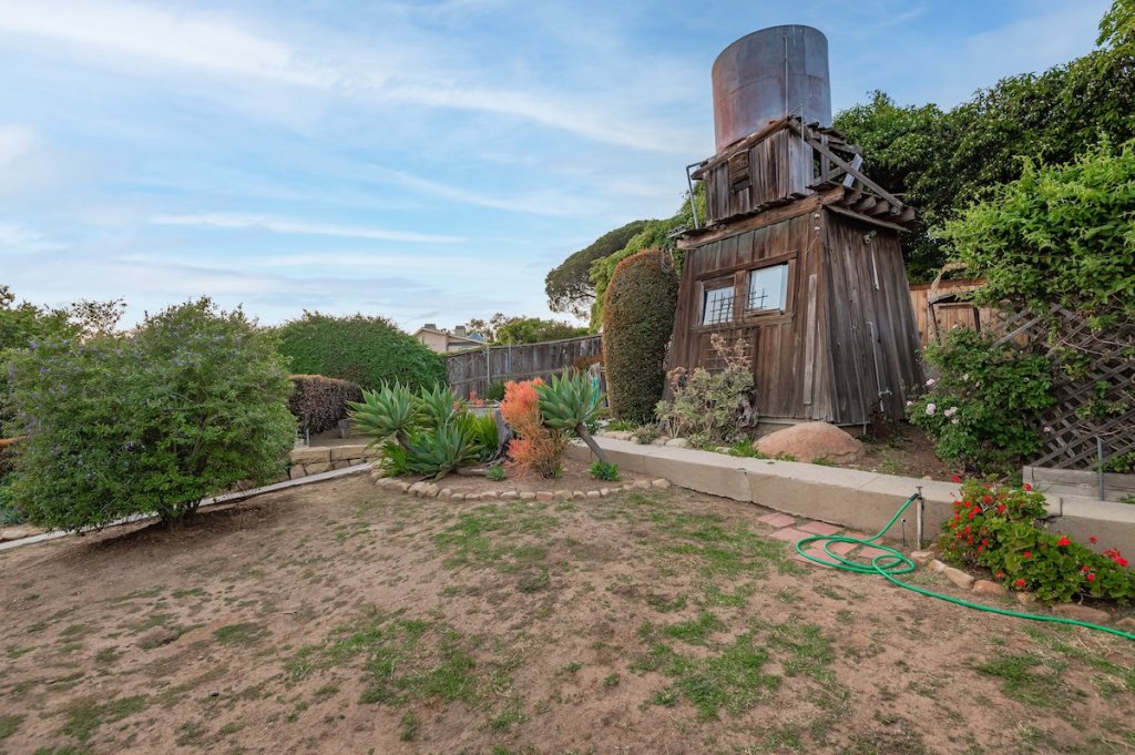 The historic ambiance continues outside, as the property terraces upward, encompassing more than half an acre. The backyard feels like a magic time capsule, with a koi pond, fruit trees, chicken coop, and winding garden walkways. The most notable structure on the property is an original water tower: a unique structure that stored water for the home’s use in years-gone-by and now stands as a testament to the history encapsulated in this Riviera jewel.