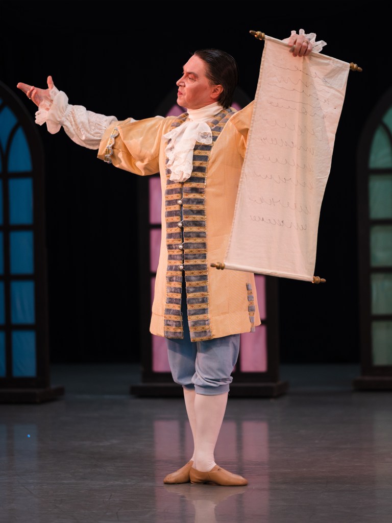 Summer sees the christening of baby Aurora in a magnificent cathedral where a band of admiring fairies takes turns celebrating the newborn child. Designer Jean-Francois Revon and principal fabricator Richard Croy have created one of the best sets ever to grace the Granada stage for this show. Costume designer Nicole Thompson and her atelier have outdone themselves in rainbow-brilliant abundance with the wardrobe. Christina McCarthy’s design of the enormous dragon puppet gives this Sleeping Beauty a unique, show-stopping focal point that would be the envy of many a larger city’s best ballet company.