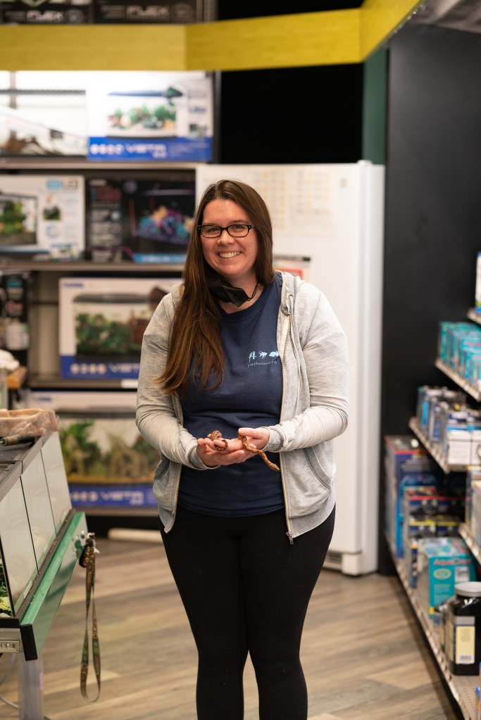 For those looking for something a little more advanced, the shop also offers veiled chameleons and rainbow boas, as well as the more “oddball” offerings, as Navarro described them, like Guyana pink toe tarantulas and Madagascar hissing cockroaches. They intentionally don’t carry anything that will grow too massive, like monitors or sulcata tortoises, she said.