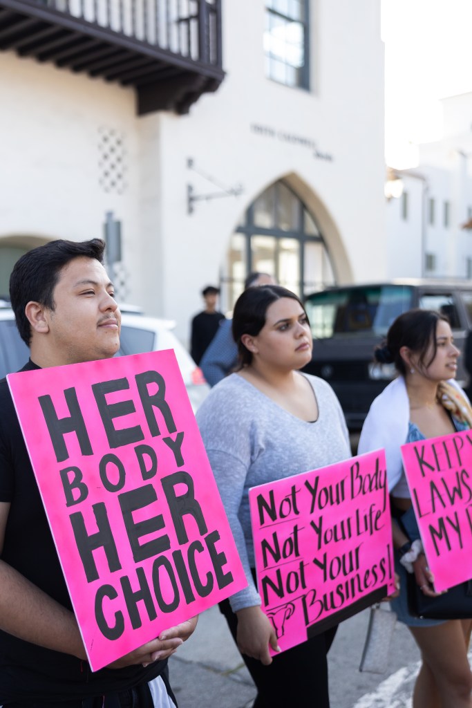 Hundreds of Santa Barbarans showed up to De la Guerra Plaza on short notice to support abortion, a right that a leaked Supreme Court document indicates is at risk. | Credit: Ingrid Bostrom