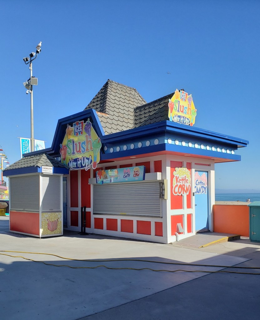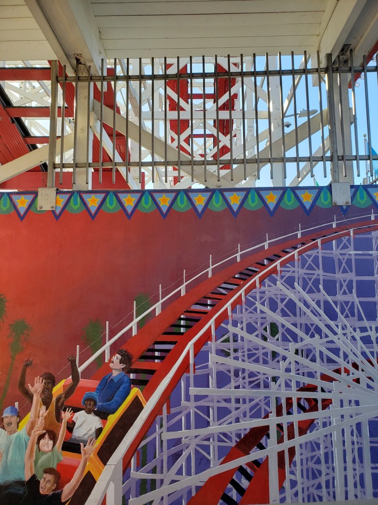 Alas, because we visited during the still-wary days of Omicron, the rollercoaster notion was scuttled by closure. Even so, we enjoyed wandering the virtually abandoned Boardwalk fun-zone-by-the-sea, newly painted and refurbished during lockdown, which triggered an odd realization. In some way, our three-day getaway to this unique California beachfront outpost — within driving distance from Santa Barbara — became a farewell-to-pandemic trek. Correction: a cautious farewell.