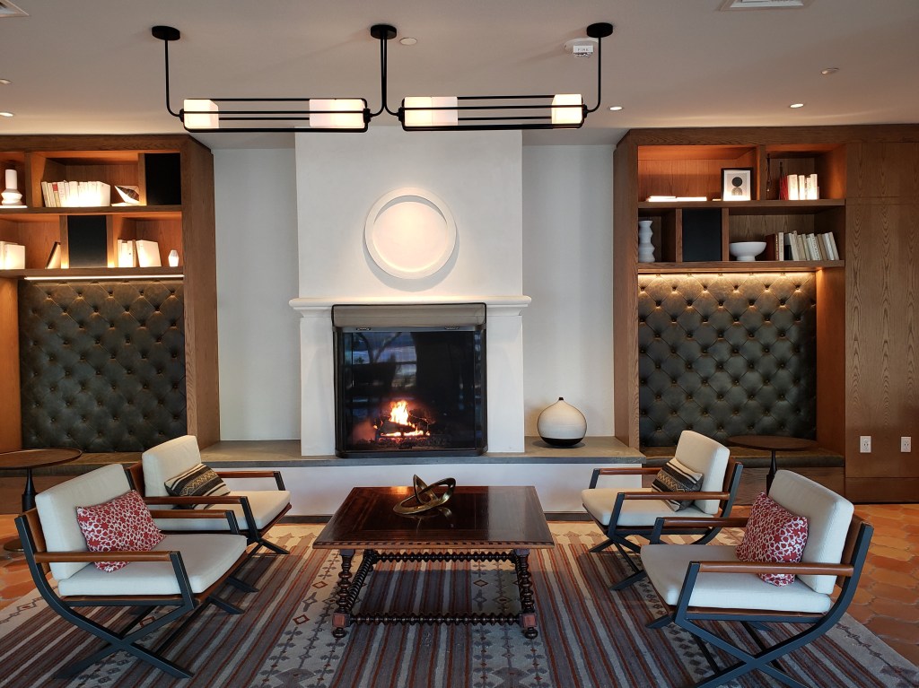 Upon arriving, we received a goody/swag bag for the dog (cookies, collapsible water bowl, and an absorbent pad for pooches with indoor bathroom issues). We were given a “forest view” room, with the expanse of Santa Cruz hillside trees beyond.