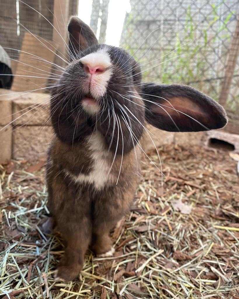 If you can’t decide between a lop-eared bunny and an “up-eared” bunny then Doris is the girl for you! She has one ear of each type, sometimes called “helicopter ears,” and has a magnificent set of whiskers. She is less than a year old, has good litter habits and loves to dash, binky and zoom when out for exercise. Take Delightful Doris home and enjoy her amazing moves and looks.