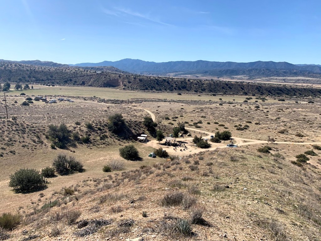 Located in what HipCamp categorizes as the “Cuyama Badlands,” the ranch sits in the rugged scrublands just south of the intersection of Highways 166 and 33, between New Cuyama and Ventucopa, as the car drives. It’s less than half an hour from the entrance to the Carrizo Plain National Monument, and there are trails off into the Los Padres National Forest in multiple directions.