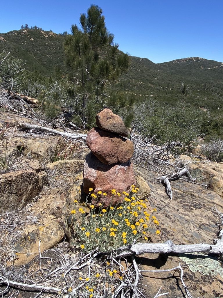 In between steps, I snapped shots of the flora that never fails to mesmerize me on these treks: the subtle purple and white of the mariposa lilies, the stark yellow of blooming goldfields, the tiny fuchsia bells of Fremont’s monkeyflower, the oddly outlined pods of the woolly fruit desert parsley, the prehistoric protruding of snow plant. And there were acres and acres of young green pines, bringing a frothy shade of green back to a wildfire-decimated basin.