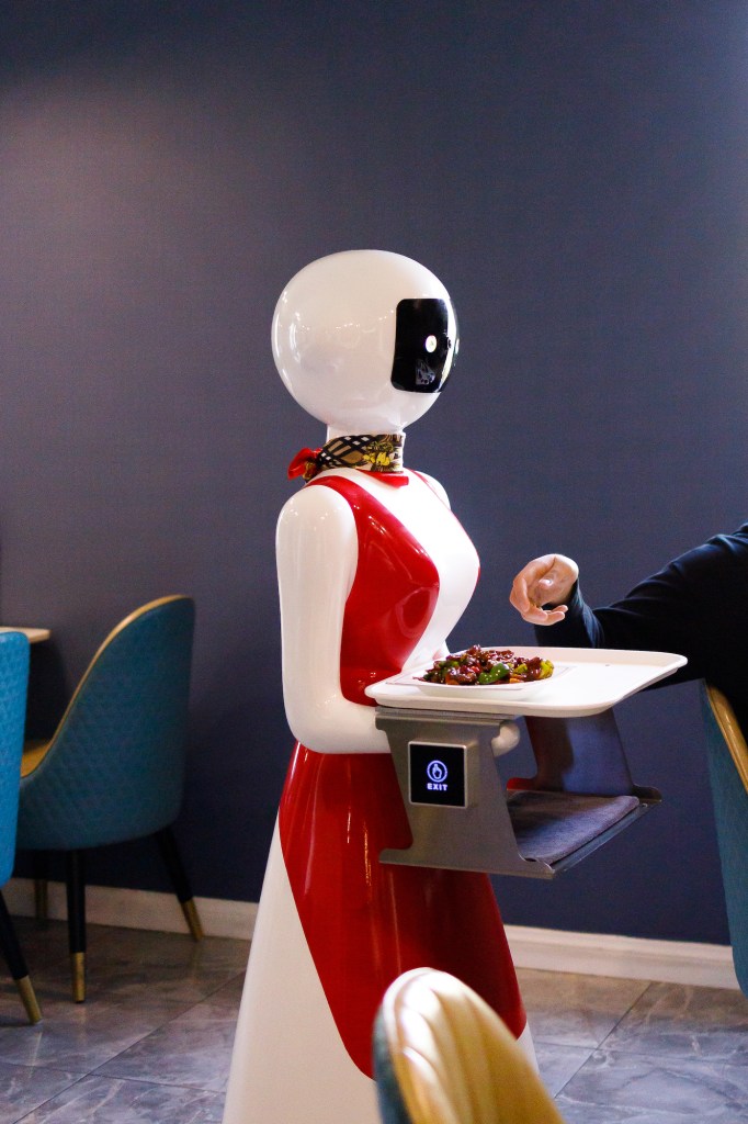 I suppose it’s enough to inform you all that there is a Chinese restaurant in town with a robot staff. Quick calls to my Los Angeles family and friends yielded no similar claims, though my son’s sweetheart said that the Amazon warehouse was patrolled by rudimentary bots. If we can’t quite be cutting-edge in the kitchen, I suppose waiter/waitress innovation ought to do.