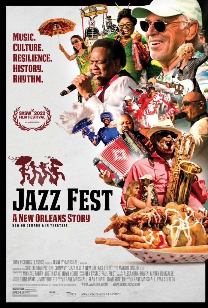 One question: what’s cheese-headed Jimmy Buffet doing in the spotlight (apart from his executive producer clout)? He seems the antithesis of the Jazz Fest spirit and unfortunately gets the last word/song. That screen time should have gone to Gregory Porter, an eloquent interviewee in the film, and an emissary of soulfulness and, yes, jazz spirit. Quibbles aside, A New Orleans Story is a fascinating, mighty fine gumbo of a film experience, one of the finer music docs in the current crowded menu.