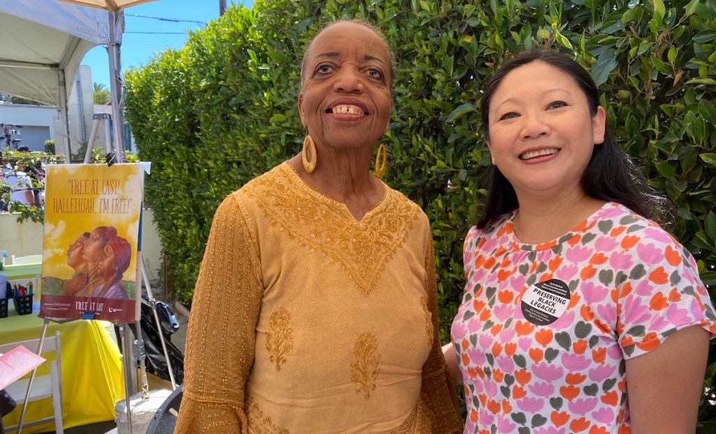 In the run-up to September, Chou and Healing Justice intern Kylah Jordan anchored a booth at Sunday’s Juneteenth celebration, talking with residents about the project and passing out postcards and stickers asking them to share photos and information with Healing Justice S.B. Around 3,000 people attended Juneteenth, said organizer Jordan Killebrew.