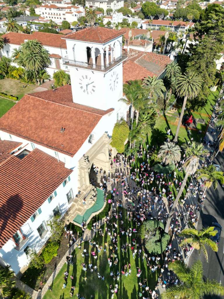 Hundreds of people congregated on the front lawn of the Santa Barbara County Courthouse Friday to attend the vigil organized by the Planned Parenthood Central Coast Action Fund (PPCAF). Speakers included leaders at Planned Parenthood, local community figures, and women sharing their experiences having abortions and how that decision impacted their lives.
