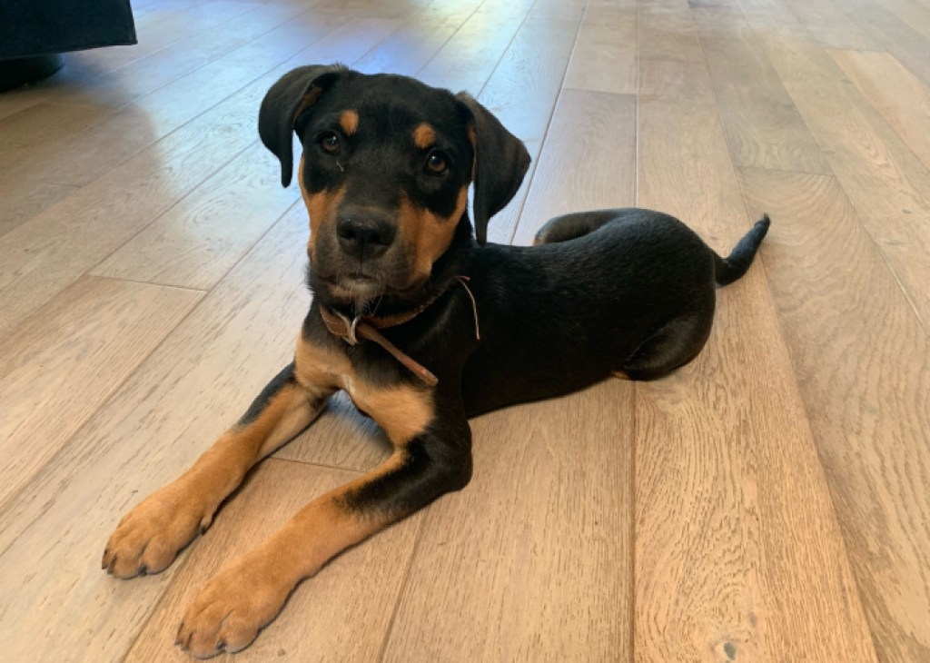 Eiza is a 4-month-old Dobie/Aussie mix who loves late-night swims, long walks in the sand, and movie night with lots of cuddles! This adorable pup is looking for a family who loves adventures and being active. She is very smart and already knows how to sit, stay, and lie down. She is potty-trained and good with other dogs.