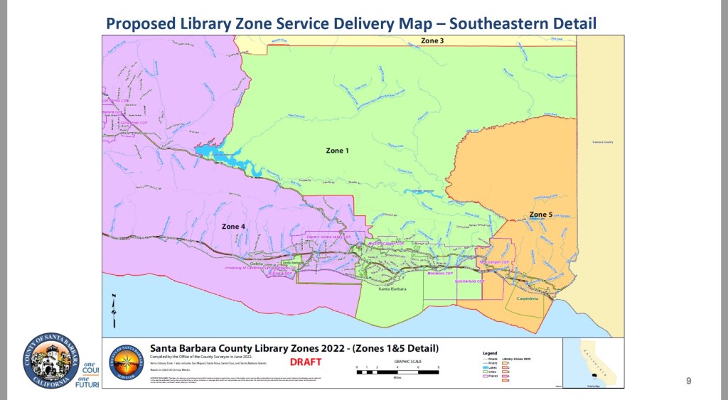 The changes to the library systems may just keep coming. At Tuesday’s meeting, Supervisor Bob Nelson asked why Santa Barbara’s library zone of operations reached above Carpinteria’s and over to the Ventura County border. Did they want to go to another county? Nelson wondered.