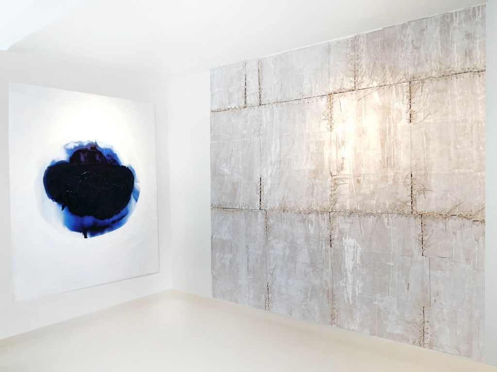 Scott believes memory has traveled with us — or within us — transported by something older than words, even older than meaning. Science established that our bodies carry trauma. Scott’s work demonstrates how the wealth of the collective is also held in our beings. She shared with me how long her “meditation” paintings took to achieve. Despite them being “simple” circles, Scott explains how it took her entire career to drip the blue just like so. The result is a feat: The thickness of textured paint combined with the circular form is an ode to the complexity of our breaths. Fittingly, Silo118 gallery chose to hang three of these — an invitation to take three breaths as you visit the show.