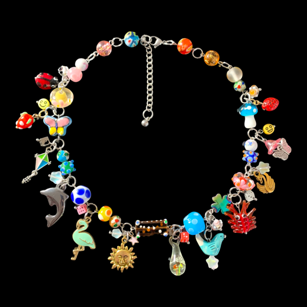 You’ll find no adherence to a specific aesthetic in their work. But you’ll take in a dizzying array of bold colors and zany geometry. There’s no formula for a Youthful Metals piece — instead you’ll scope out a chaotic assemblage of charms here, an unexpected arrangement of seed beads there, and a whole lot of sweeping lampwork curvature.