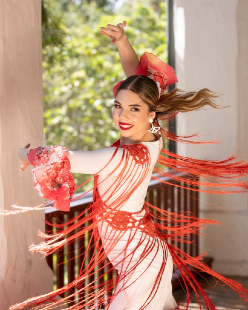 This year’s Spirit of Fiesta, 19-year-old Tara Mata, has been dancing since she was 5 years old. Growing up in S.B. meant that she became aware of the amazing traditions and the importance of this annual celebration. The flamenco style of dance “has always been my form of expression. I was pretty shy growing up … and dancing flamenco allows me to connect with the music and the audience in such a unique way.” Tara has always looked up to the Spirits, and being chosen this year fuels her to be the best role model and dancer she can be.