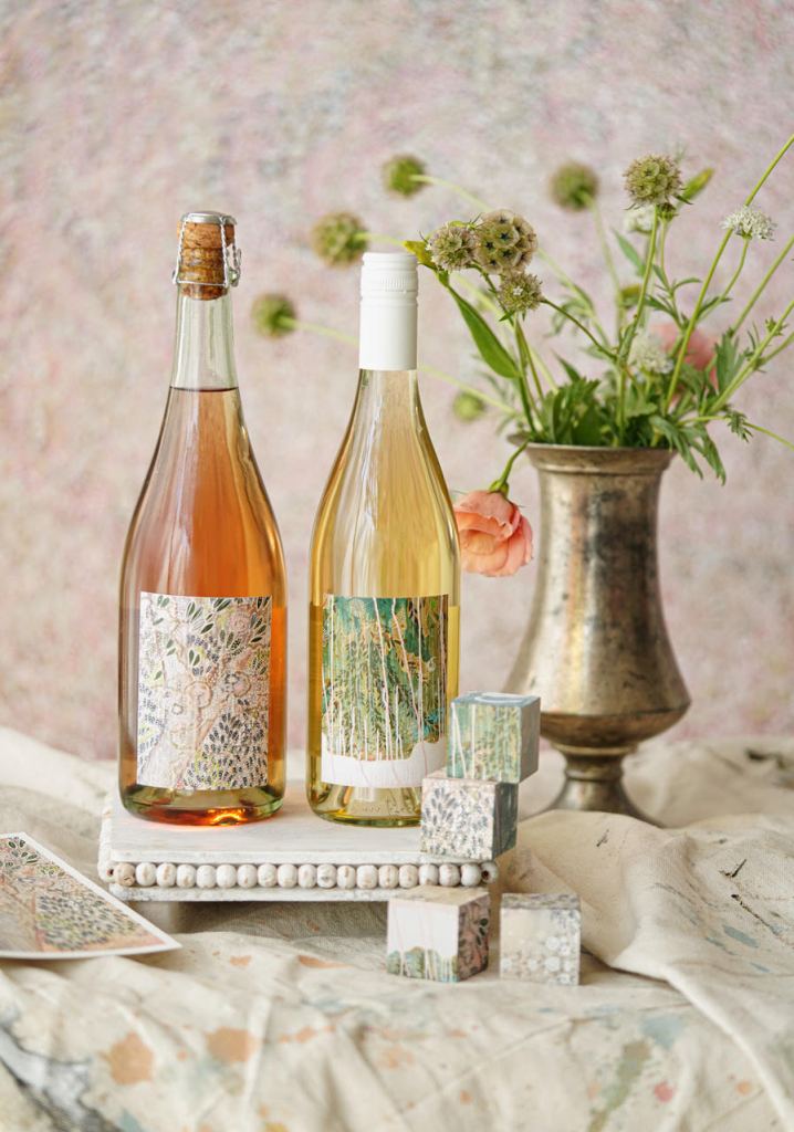 For Artiste’s upcoming release of sparkling rosé and chardonnay, the Rices are sourcing straight from downtown Santa Barbara. Those two bottles feature the environmentally ethereal paintings of Colette Cosentino, whose working studio and gallery is located at 11 West Anapamu Street.