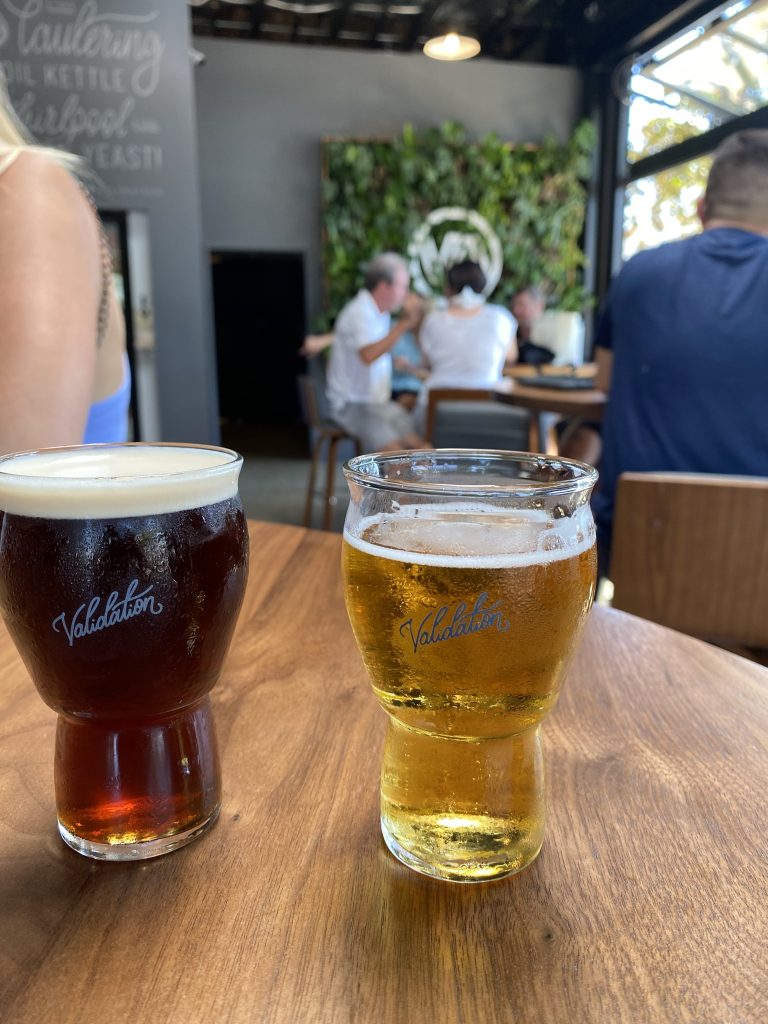 Brian admits he has high hopes for Validation’s food with Marsit as head chef and Dean running kitchen operations, for he says, pointing to his neighbor across Anacapa Street, “We want to be good enough to compete for the overflow from places like The Lark.” Ultimately, Brian says, “I know it’s a cliché, but we want to be someplace for everybody. We’ve got the ‘singles bar’ window looking out into the Funk Zone, we have the wall of screens for the sports fan, we have the gender-neutral bathrooms to show we’re a place of inclusivity, and we’ve got the best water in the world.” Figuring they had to build a great RO filtration system for the water they were brewing with, the Deignans also ran the system to a tap in the restaurant. Briana says, “It’s important to remain hydrated while drinking beer.” And if that seems motherly, there’s also this — Validation opened July 14, and Briana gave birth to the couple’s second daughter on July 27. So they see it as a family business, too, as you can bring kids to a restaurant and not to a tech office. “Eventually, they will be our bouncers,” Brian jokes. “Our 3-year-old could be one now.”