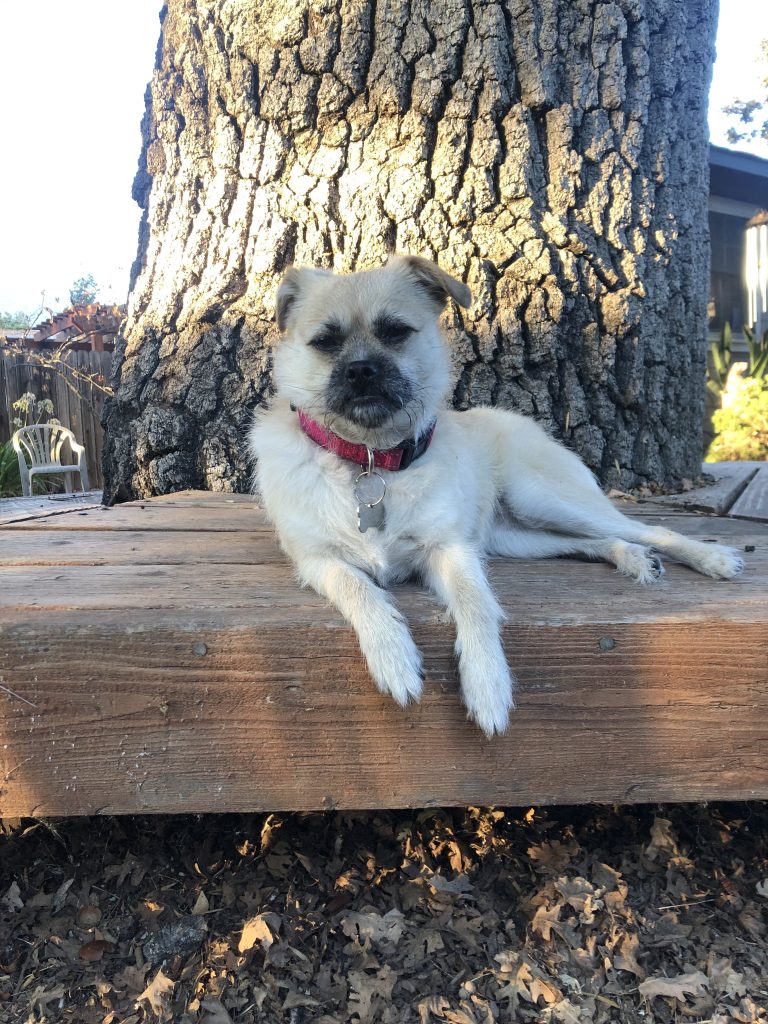 Pregnant and abandoned to the streets of Bakersfield, this beauty gave birth to seven puppies shortly after being rescued. She was a great mama to her litter and so grateful to her foster. She is thought to be a 4-year-old Pug/Border Terrier mix. Hazel is fun, playful, and very affectionate. All of her pups were adopted, and now it’s her turn to find her happily ever after with a loving family. She loves going on walks and does well on a leash. She also loves napping on her big comfy pillow bed. Hazel is a sweet girl who is eager to please. She will make a very loyal companion.