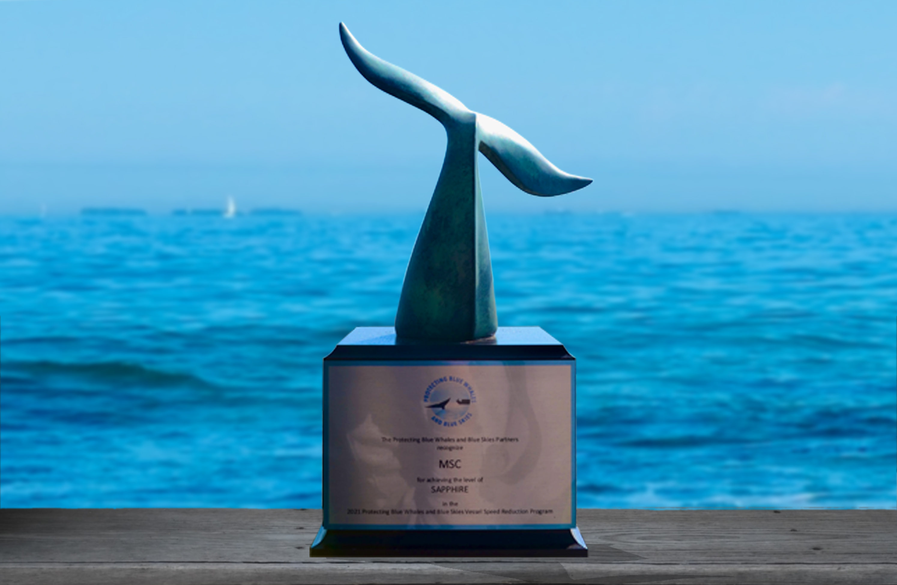 For the fourth year in a row, Mediterranean Shipping Company (MSC) notably achieved the Sapphire tier in the large fleet category and demonstrated that planning enables ships to reduce speeds in VSR zones without disrupting operations. In 2021, MSC traveled more than 23,000 nautical miles at 10 knots or less. Swire Shipping achieved the Sapphire tier in the small fleet category with 1,500 nautical miles at 10 knots or less. For their outstanding commitment, these two companies earned the Protecting Blue Whales and Blue Skies Whale Tail award.