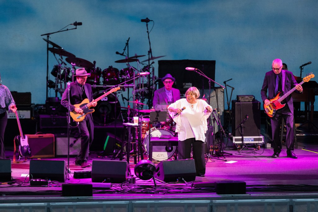 It did feel a bit like a reunion night at the beautiful amphitheater — I saw my first Bonnie Raitt show there in 1992, and I feel pretty certain that many of the people in the audience last week were there back then, including several of my parents’ pals popping up in the audience. Bonnie’s famous friends were there too, including Hale Milgrim, David Crosby and — in the front row — an agelessly spry Chubby Checker (“There’s no puberty in my life without Chubby Checker,” said Raitt), who friends say celebrated his 81st birthday at a private party the next night at SOhO.