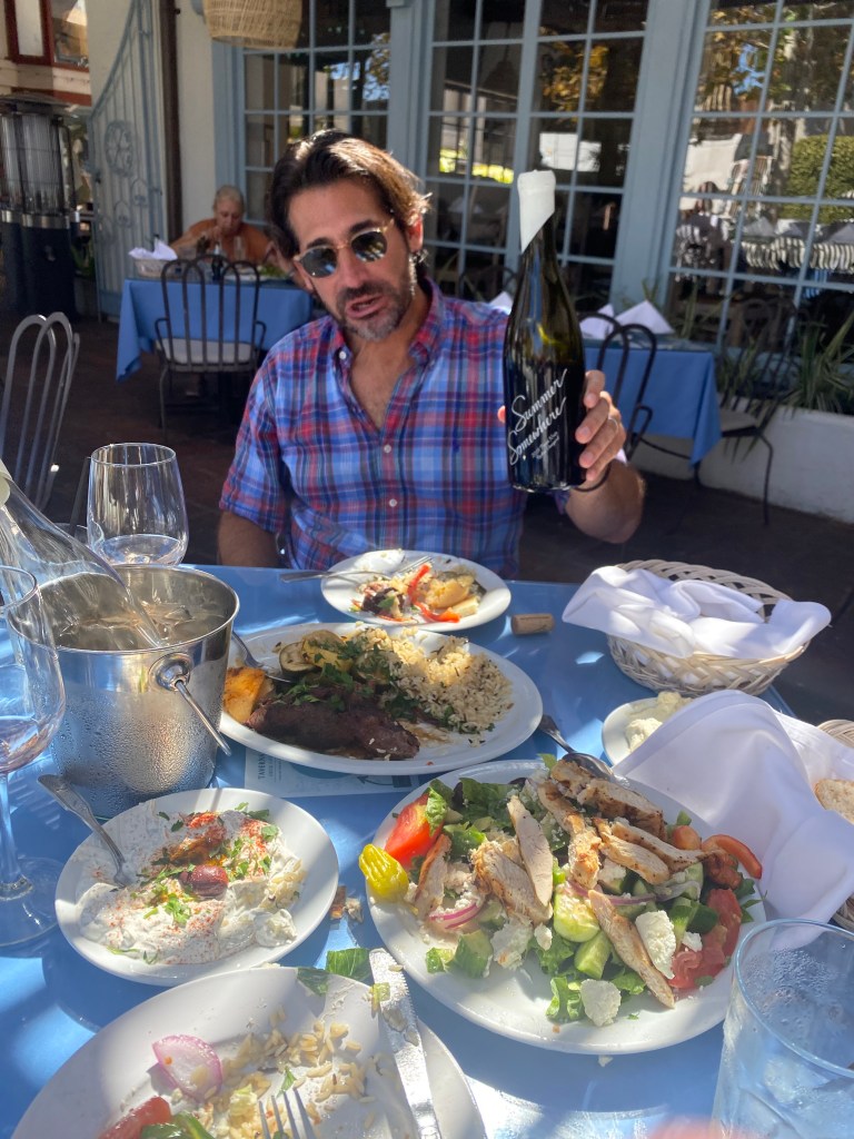 Then I was off to see Blatty again in the vineyards of Malibu, spending most of our time visiting with Amanda Greenbaum at AJA Vineyards. Upon reaching the coast, I introduced Blatty to Billy Din of Summer Somewhere, which now has a tasting room inside the Fred Segal store in the Malibu Village. Din and I carried on for a bit across the street over mouth-watering Greek food at Taverna Tony before I had to head home.