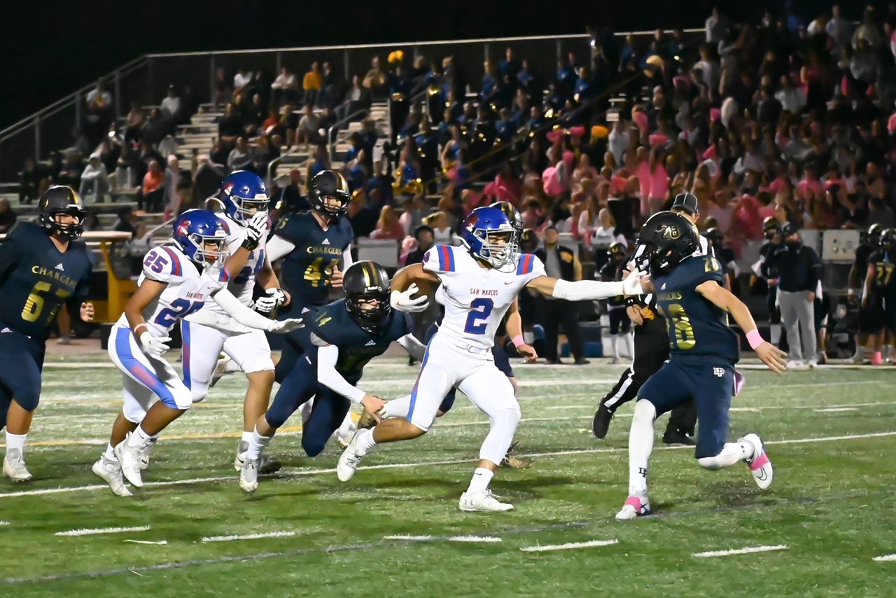 Perhaps even more impressive than the balanced offensive attack that San Marcos displayed was the smothering defense that held Dos Pueblos scoreless until late in the third quarter.