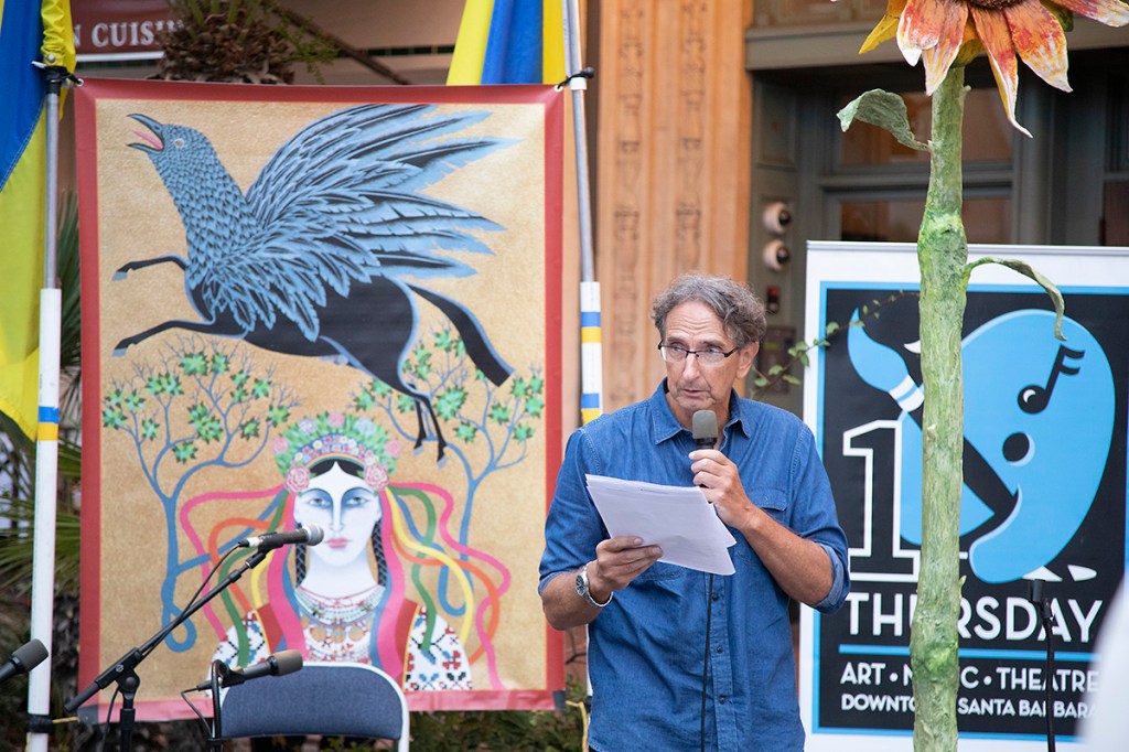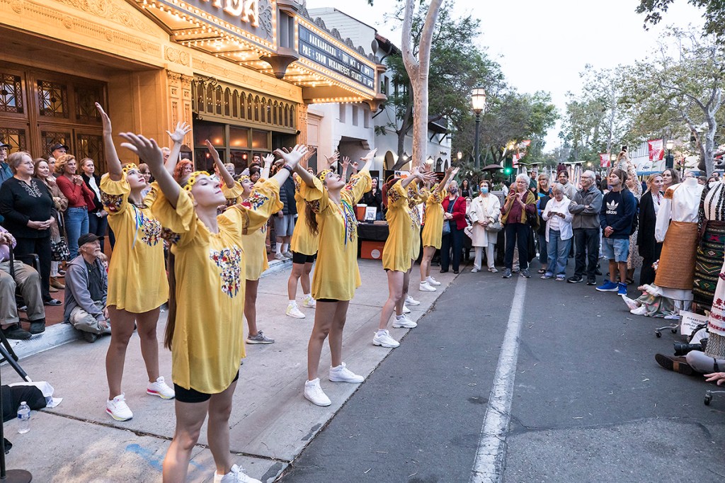But wait — there was more. An ambitious Ukrainian mini-festival, organized by retired A&L programmer Roman Baratiak — a longtime Santa Barbaran with Ukrainian roots — unfolded on the pedestrian-only street area outside the Granada prior to the big show, with dance by the Ukrainian Arts Center of Southern California and banura player Siuzanna Iglidan.