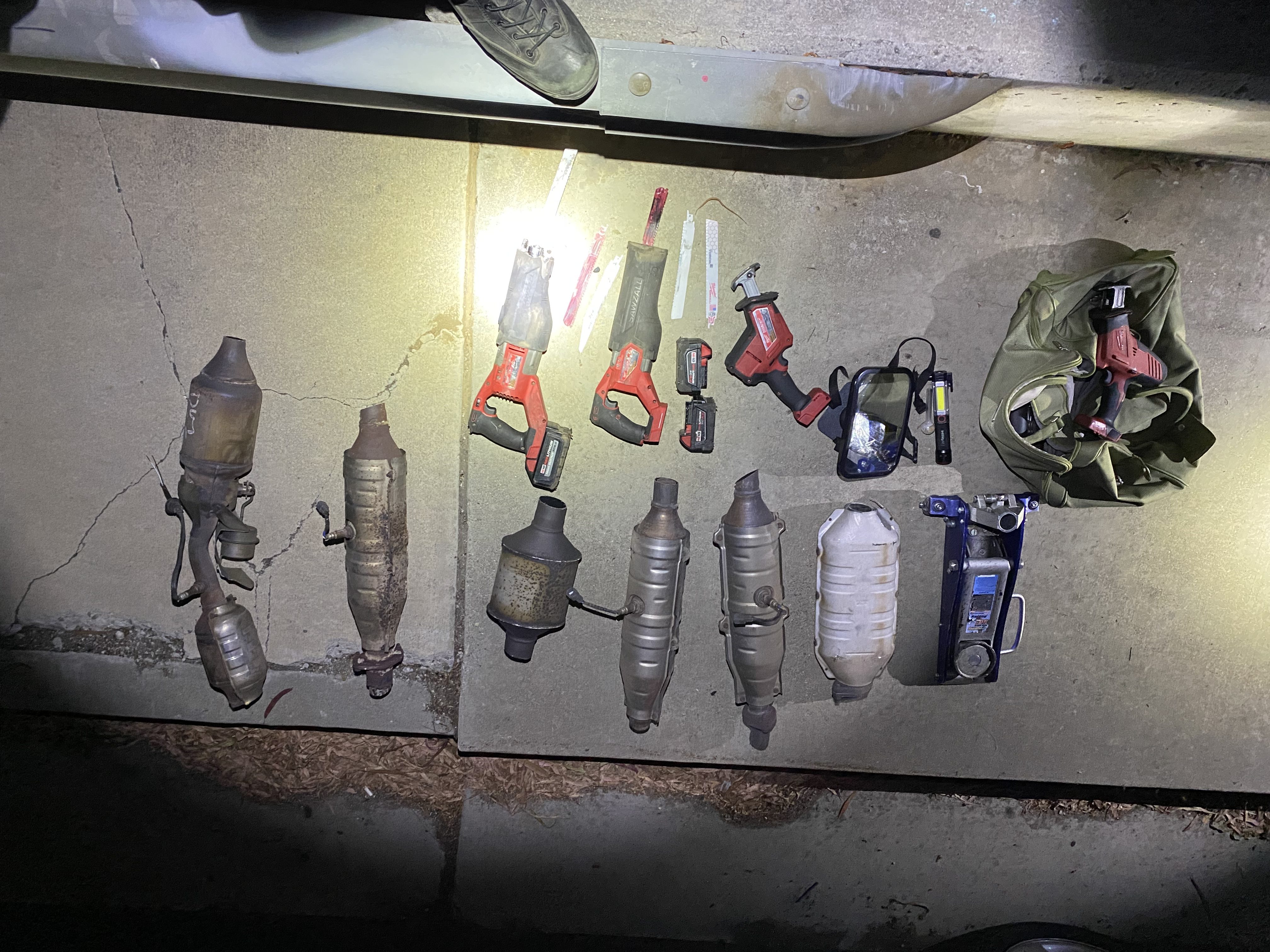 Goleta, Calif. – Sheriff’s deputies arrested two suspects for theft of catalytic converters and have recovered six stolen converters. On Tuesday, October 11, 2022, at approximately 3:40 a.m., deputies responded to the area of Dearborn Place and Armitos Avenue for a reported theft of a catalytic converter that had just occurred. The reporting party provided a suspect vehicle description. Approximately 7 minutes later, deputies spotted a similar vehicle on Highway 101, southbound and conducted a traffic enforcement stop near the Las Positas offramp.