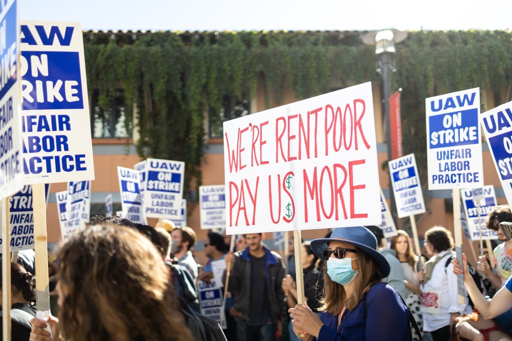 The UC’s student workers make an average of about $24,000 annually; the unions are calling for a base annual salary of $54,000 for all grad workers and a $70,000 salary for postdocs.