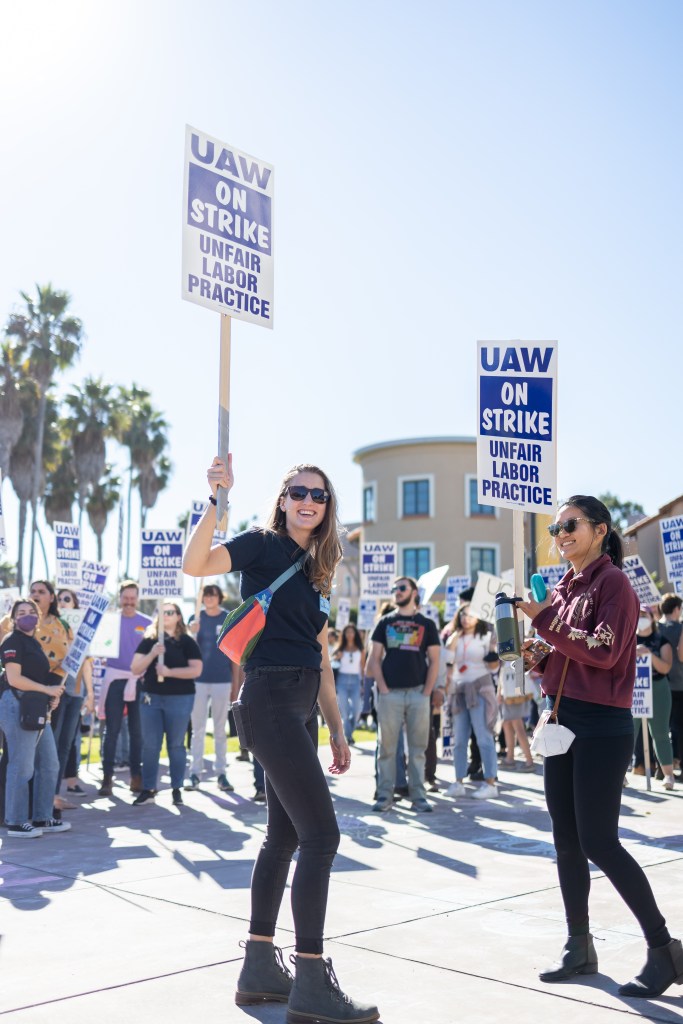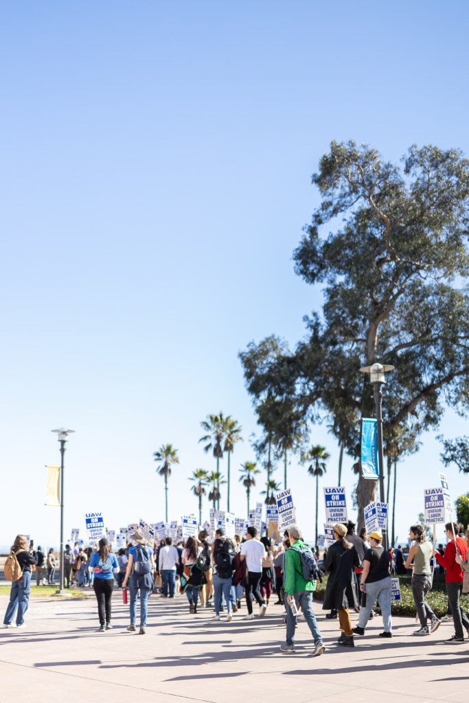 Striking employees at UCSB make up about 3,100 of the total 48,000 academic workers represented by the United Auto Workers union (UAW) — including teaching assistants, postdocs, academic student employees, graduate student researchers, academic researchers, readers, tutors, and more — from all 10 campuses of the University of California protesting against 28 alleged Unfair Labor Practices committed by the University.