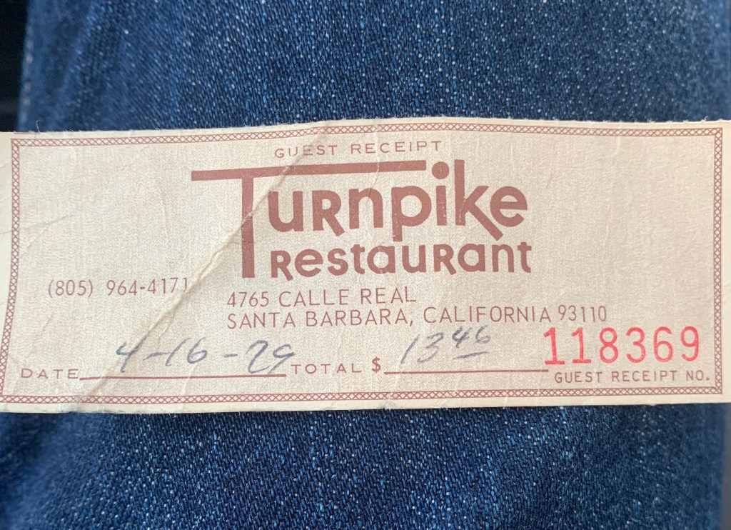 “I was recently in the area on a trip up the coast from Newport Beach and stopped over at a small vintage store in Ventura. While there, I purchased a jacket that the clerk dated to the early 1960s, possibly late 1950s. Today, I found a receipt in the pocket of the jacket that is dated 4/16/1929. However, It looks like the 2 could be a quickly written 7,” he writes. “I’d love to get some more information on the restaurant, because the jacket is my new favorite, and one that I’ll probably keep for the rest of my life. If the restaurant can give me any insight into the life of my jacket, that would be even better.”