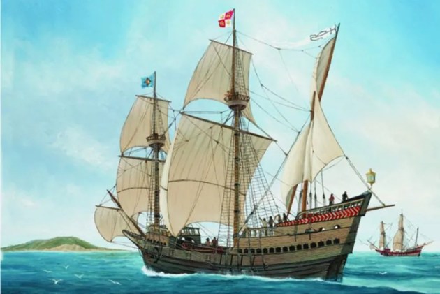 Cabrillo’s two ships, La Victoria and San Salvador, dropped anchor off Dos Pueblos in the late afternoon on October 16, 1542. The huge ships with giant billowing sails must have been an overwhelming sight to the natives, but they probably heard of their approach from fellow Chumash to the south.