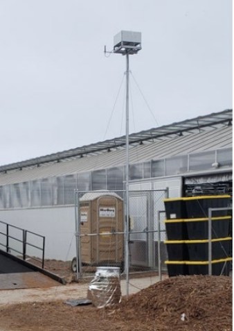 Tubing was run up a pole to collect air samples at the elevation of the vents in the greenhouse roof.