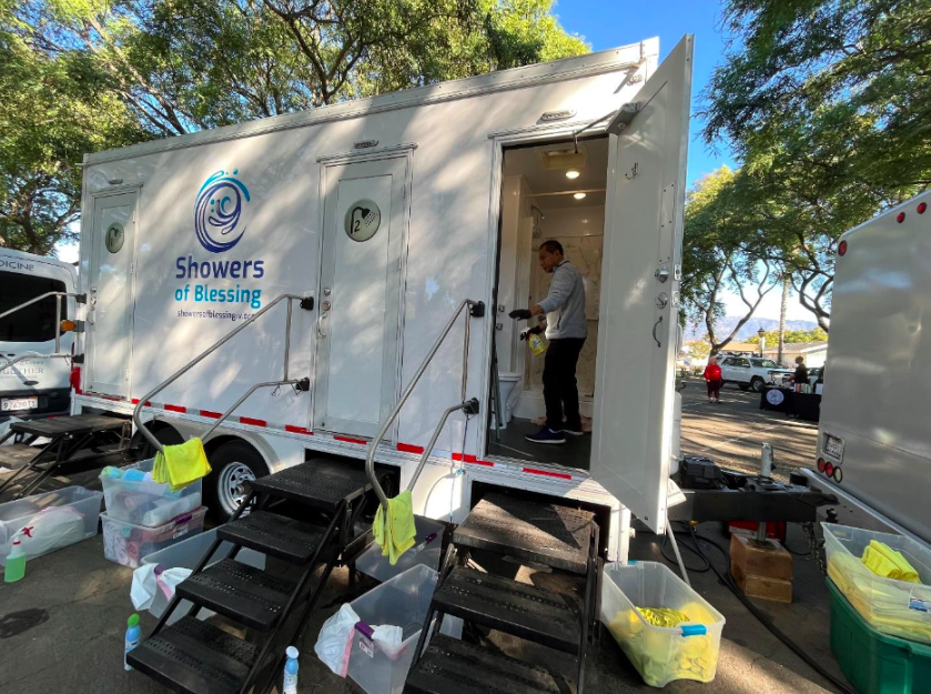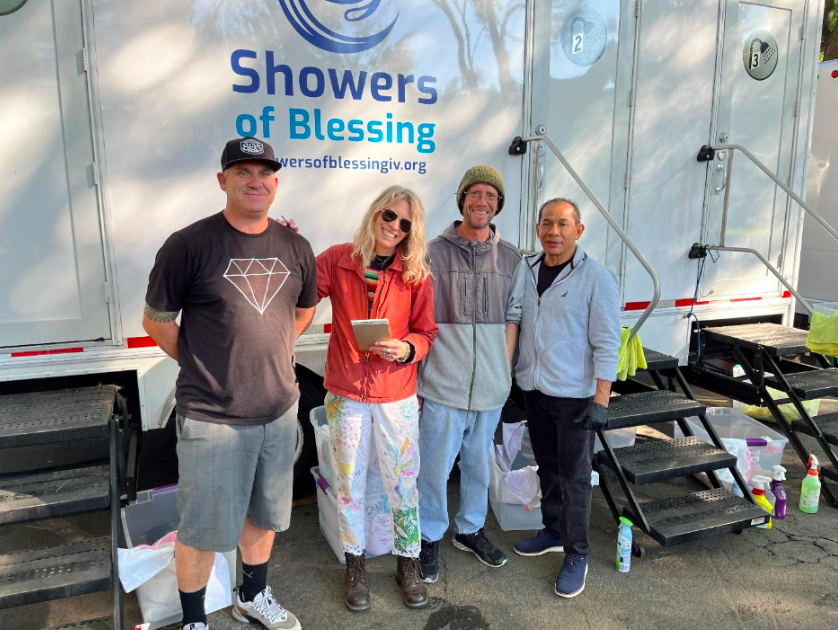 Crane School second graders put their money where their hearts are this week by curating care packages for Showers of Blessing guests, which their teacher, Karen Ohrn, delivered to the commuter lot shower session yesterday morning. The packages included socks, toothbrushes, healthy snacks, lotions, gift cards, and more than a few dollars from the children’s piggy banks. Enacting their school’s “Put We before Me” motto, they gathered items for people who are without homes or other necessities. They gathered so many quality items, they were able to create thirty care packages. Guests of Showers of Blessing enjoyed choosing packages that contained items they would especially enjoy. Smiles and nods demonstrated their pleasure at their chosen items, as well as their comments; “thank you,” and “oh yeah,” and “yes; that one.” Their lives on the street, or living in their vehicles, are often cold, uncomfortable, and lacking basic comforts. Showers of Blessing provides hot showers for anyone in need at the commuter lot at 400 W. Carrillo Street on Tuesday mornings from 10 to 1, and at five other sites during the week. See https://showersofblessingsb.org. Showers of Blessing serves 45 showers each week at the commuter lot and up to 35 at other sites around town, and in Goleta and Isla Vista.