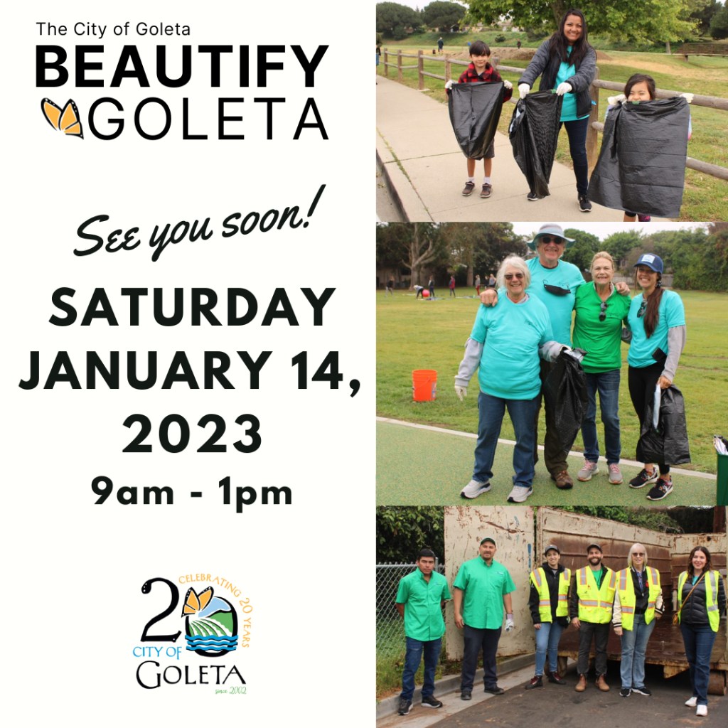 GOLETA, CA, December 22, 2022 – The City of Goleta’s next #BeautifyGoleta event is coming up on Saturday, January 14th, 2023. This event will feature a Bulky Item Collection Event and an updated Self-Guided Cleanup Program.